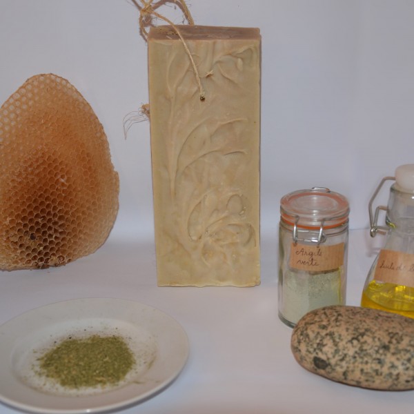 Comme dans tous mes savons, le miel et la cire d'abeille assouplissent, nourrissent et adoucissent la peau. Les algues reminéralisent et réhydratent les peaux sèches et sensibles. Elles régularisent l'excès de sébum, elles agissent donc sur les peaux acnéiques. Elles aident la peau à devenir plus lisse, plus souple. Il est parfumé à l'huile essentielle de criste marine.