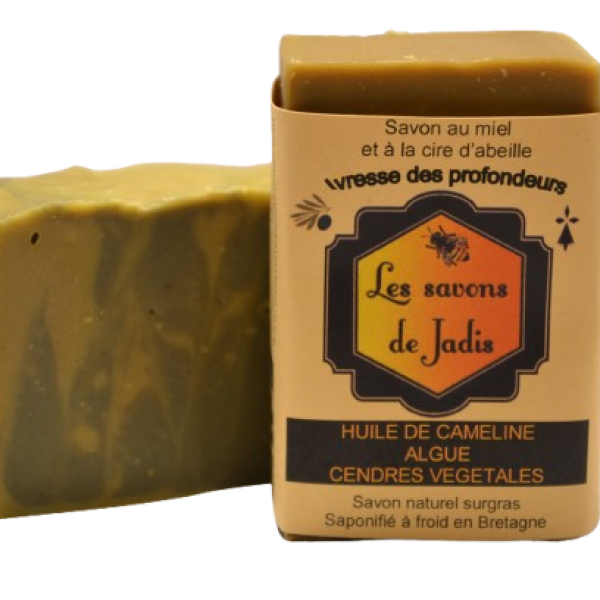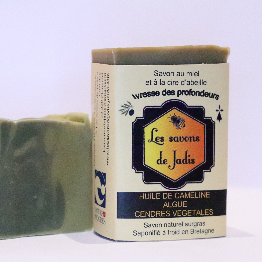 Comme dans tous mes savons, le miel et la cire d'abeille assouplissent, nourrissent et adoucissent la peau. Les algues reminéralisent et réhydratent les peaux sèches et sensibles. Elles régularisent l'excès de sébum, elles agissent donc sur les peaux acnéiques. Elles aident la peau à devenir plus lisse, plus souple.